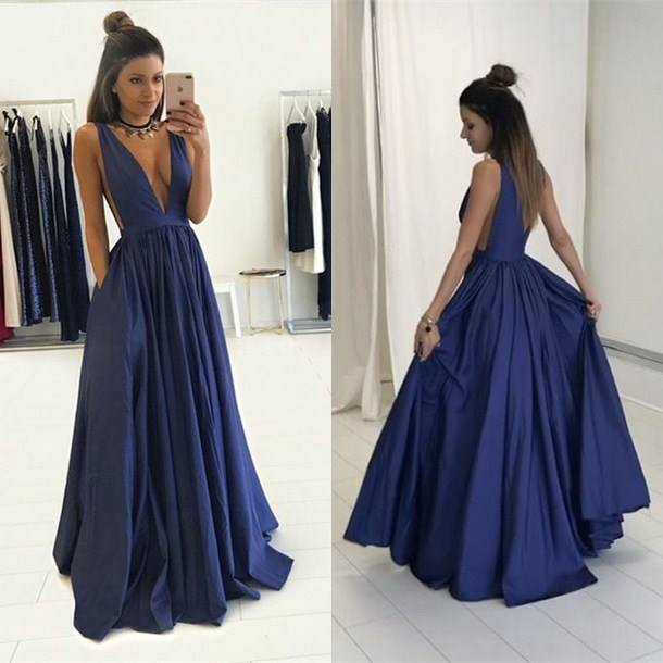 Long V-Neck Prom Dress,Sleeveless Evening Gown,Floor-Length Evening Dress
