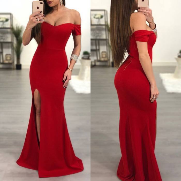 Elegant Red Off-the-Shoulder Prom Dress | Mermaid Sweetheart Evening Gowns