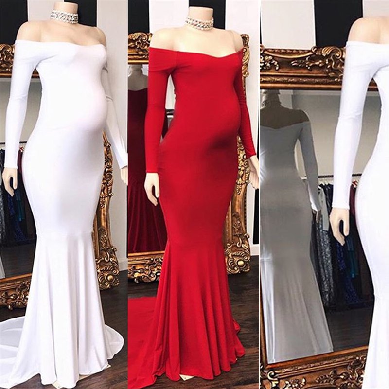 Off the Shoulder Mermaid Long Sleeves Red Pregnant Dresses