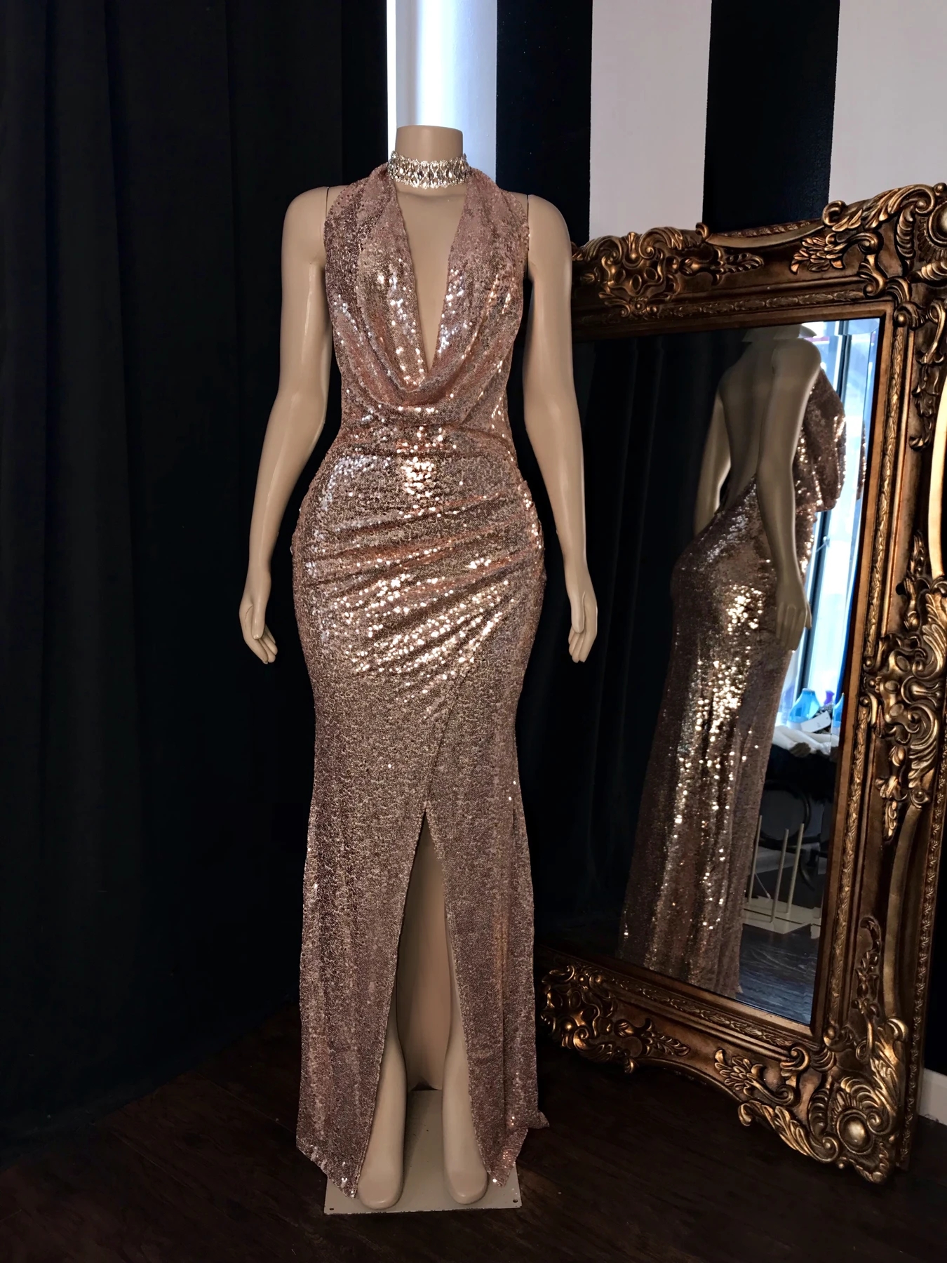 Sexy Mermaid Sleeveless Gold Sequin Prom Dresses with Ruffle
