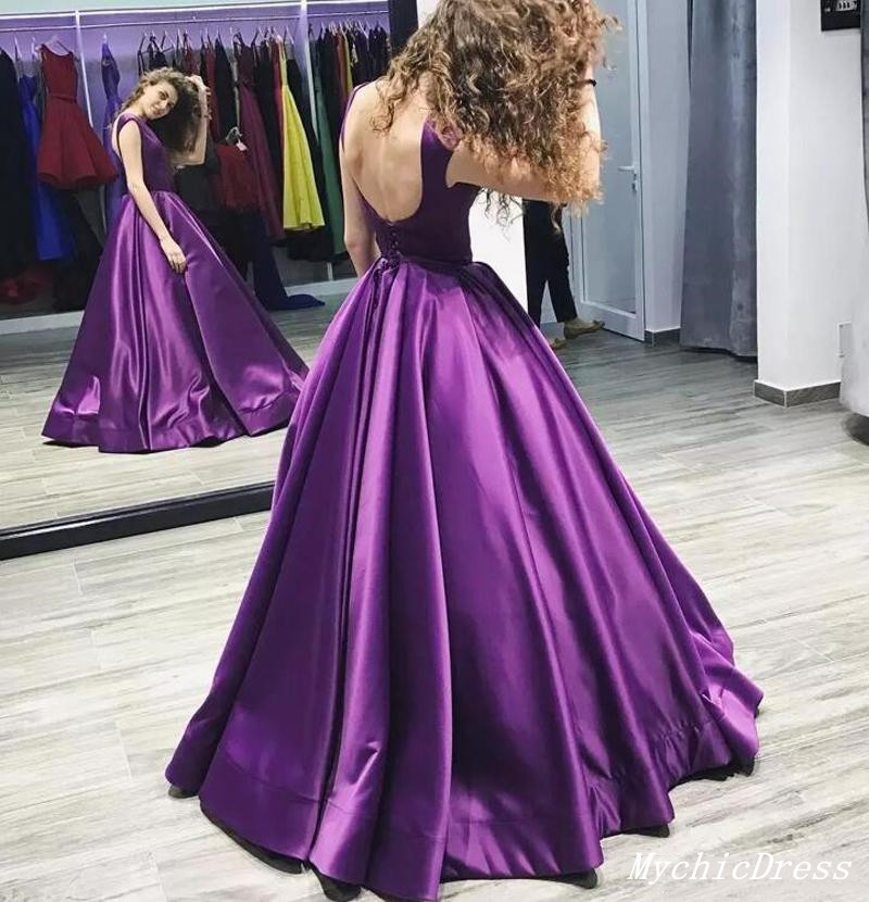 A Line Purple Prom Dresses Sleeveless Evening Gowns