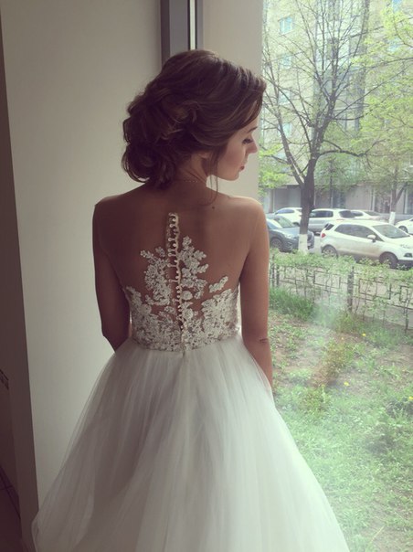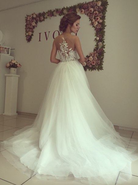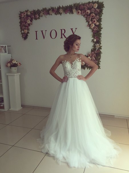 A-line Wedding Dress,Sheer Lace Bridal Gowns,Free Wedding Veils
