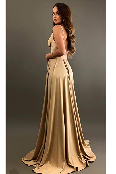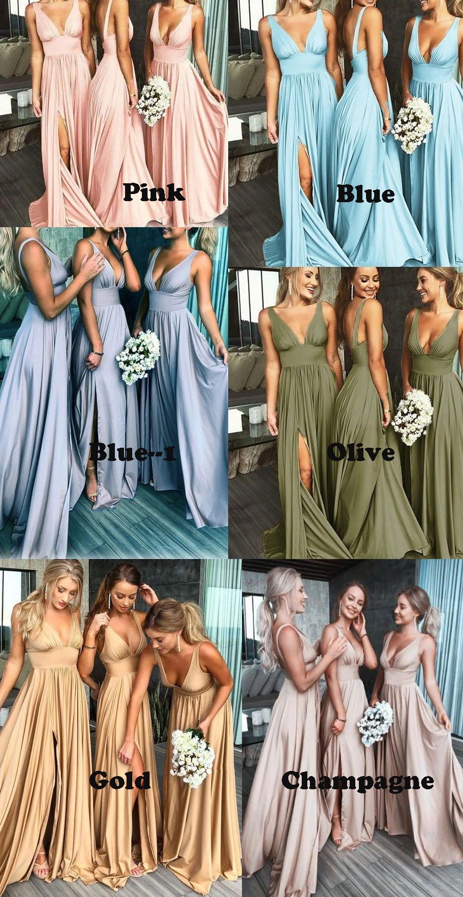 V-Neck Backless Long Slit Side Beach Wedding Bridesmaid Dresses