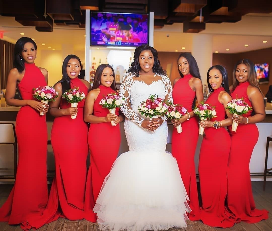 Red Chiffon Bridesmaid Dresses Long High Neck Dress