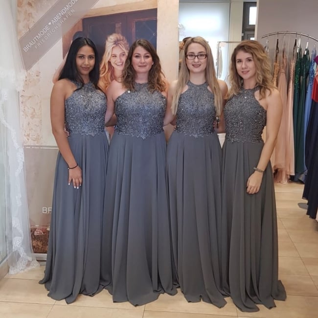 Cheap A Line Sequins Chiffon Halter Dark Grey Bridesmaid Dresses