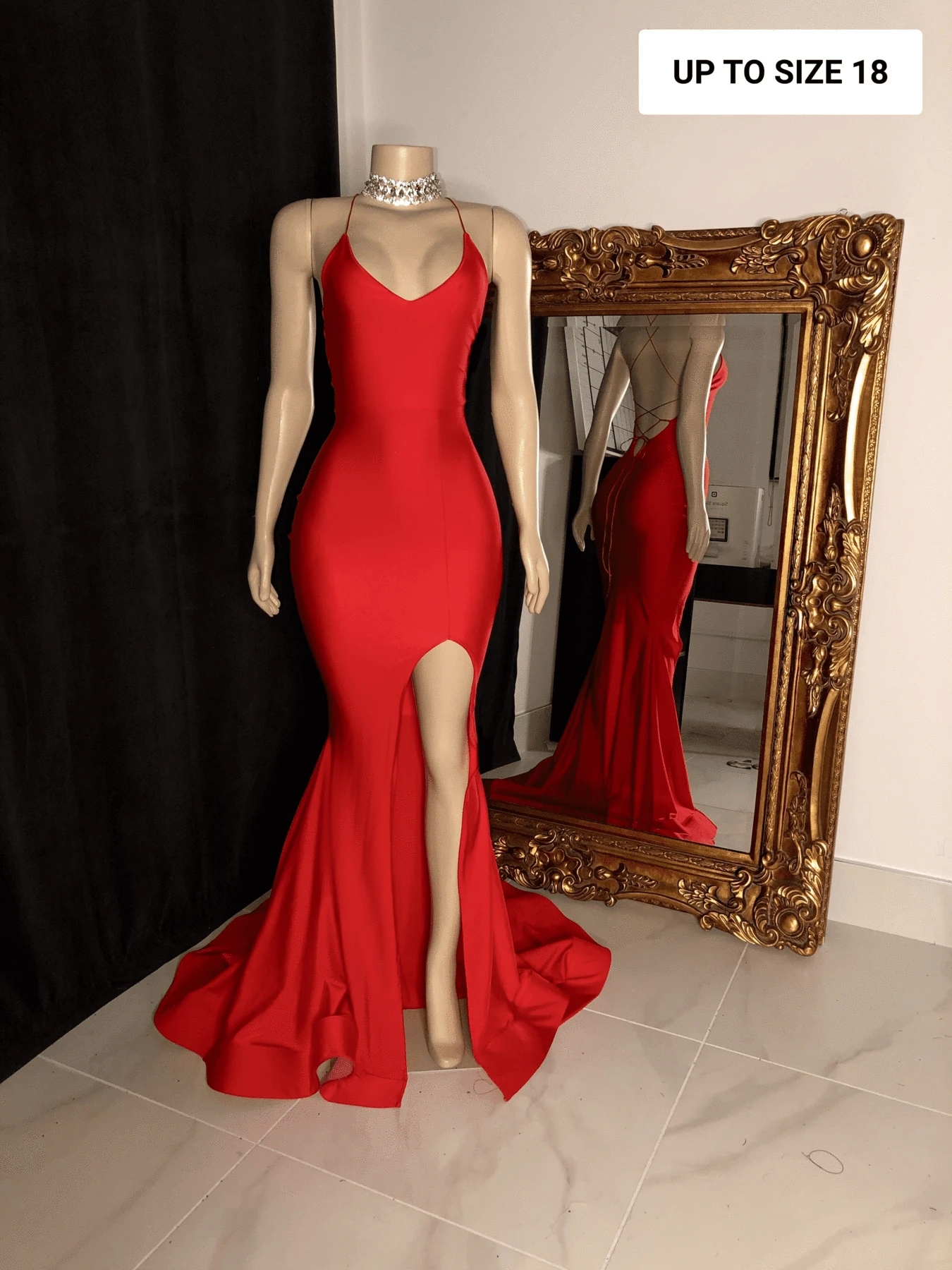 Simple Mermaid Sleeveless Spaghetti Straps Red Prom Dresses