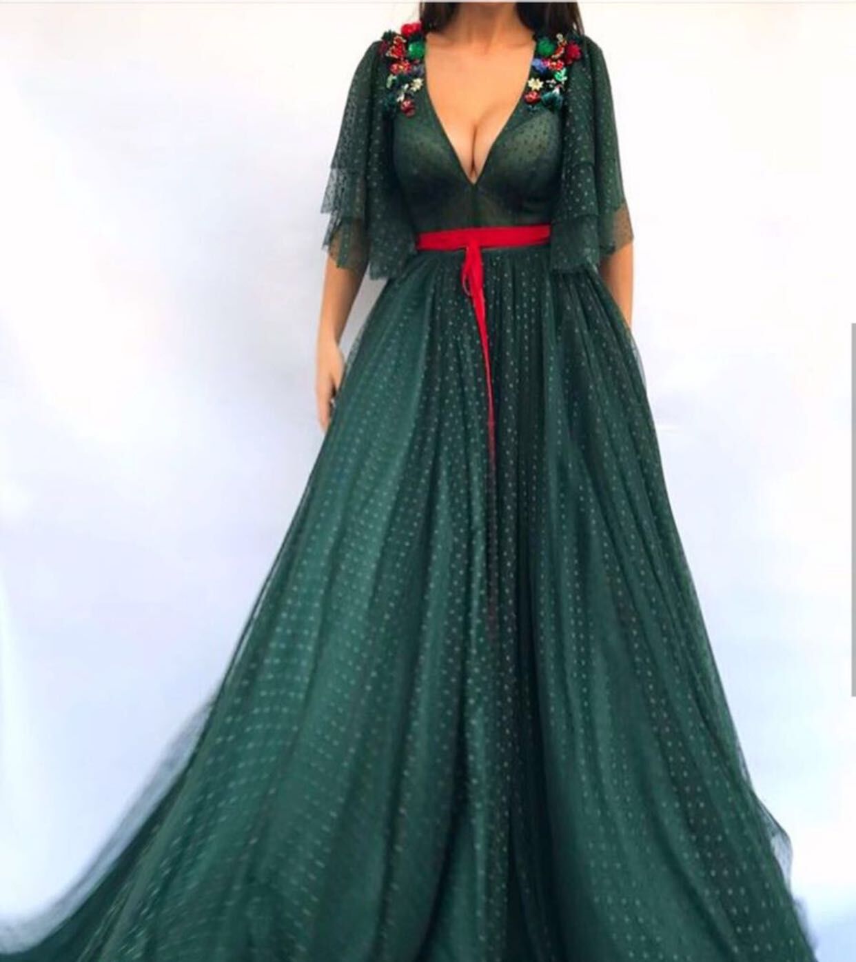 Sexy Green Long half Sleeves Spring Evening Dress