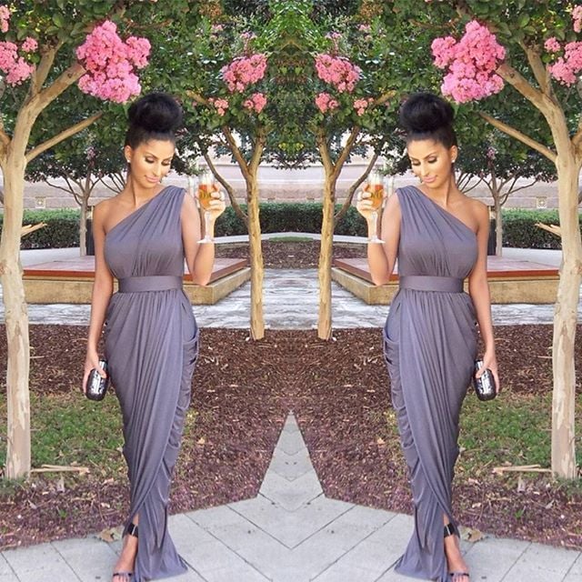 One Shoulder Chiffon Bridesmaid Dress,Grey Ruffles Formal Gowns