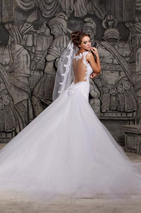 White Mermaid Wedding Dress,Tulle Lace Bridal Gowns,Free Wedding Veil