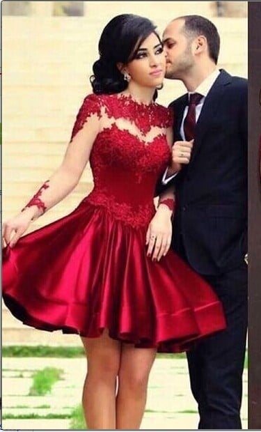 Knee Length Lace Homecoming Dresses, Long Sleeves Burgundy Party Gowns