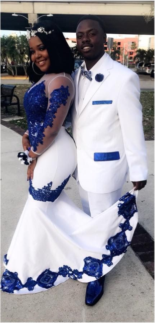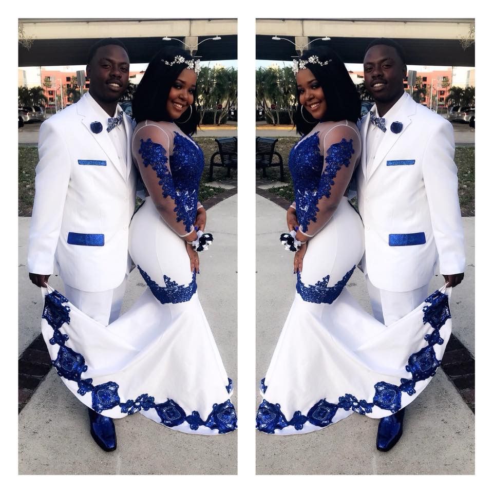 Royal Blue Lace Evening Gown, Sexy Mermaid Party Dresses