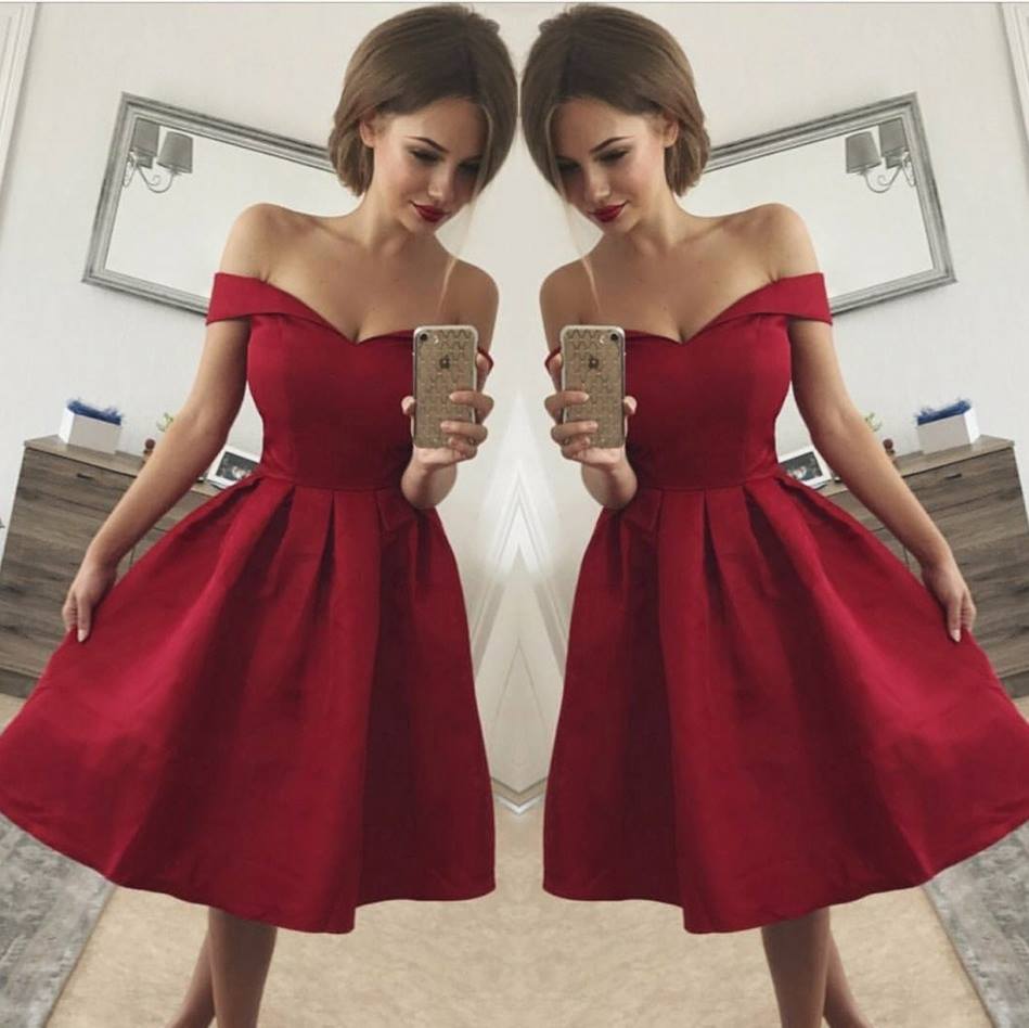 Burgundy A-Line Homecoming Dresses | Off-The-Shoulder Short Cocktail Dresses