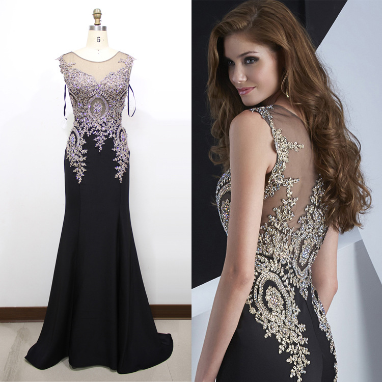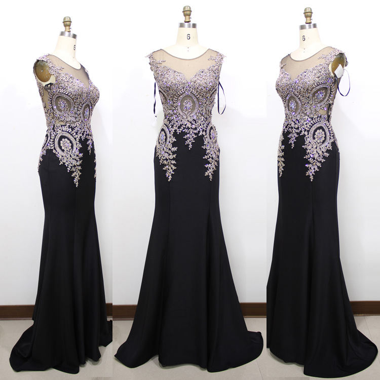 Sexy Long Mermaid Appliques Lace Prom Dress Black Evening Gowns