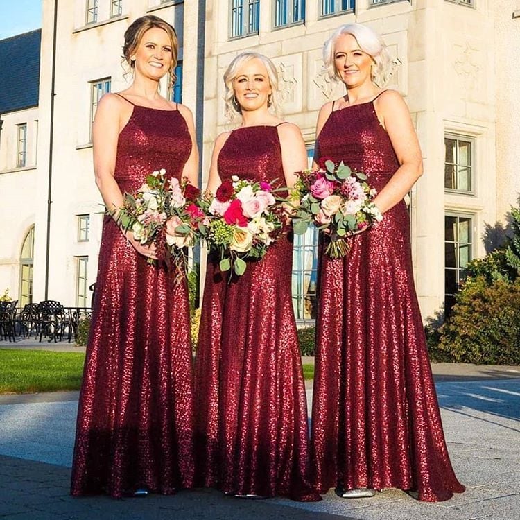 A LINE Burgundy Sequined Bridesmaid Dress Sexy Evening Gown