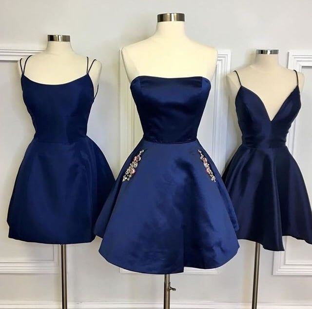 Navy Blue Short Homecoming Dress with Pockets Crystals Cocktail Dress