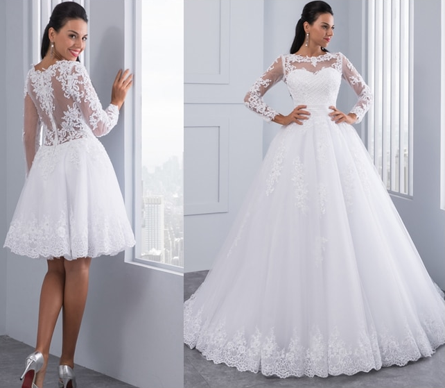 Pearls Detachable Ball Gown 2 in 1 Lace Wedding Dress