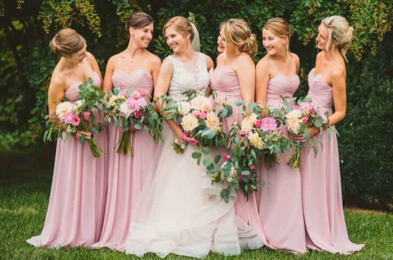 Long Chiffon Sweetheart Blush Pink Bridesmaid Dresses