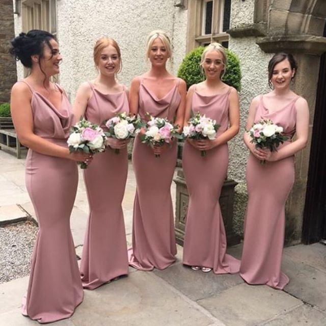 Cheap Mermaid Peach Bridesmaid Dresses Open Back