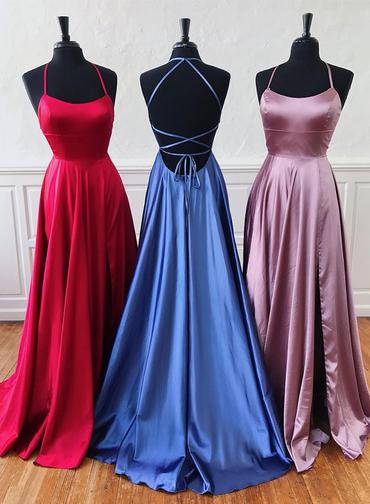 A Line Simple Long Bridesmaid Dresses Cross Back Satin Prom Dress
