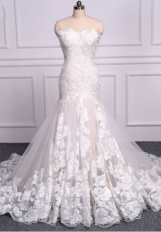 Mermaid Backless Floral Tulle Lace Vintage Wedding Dresses