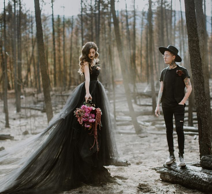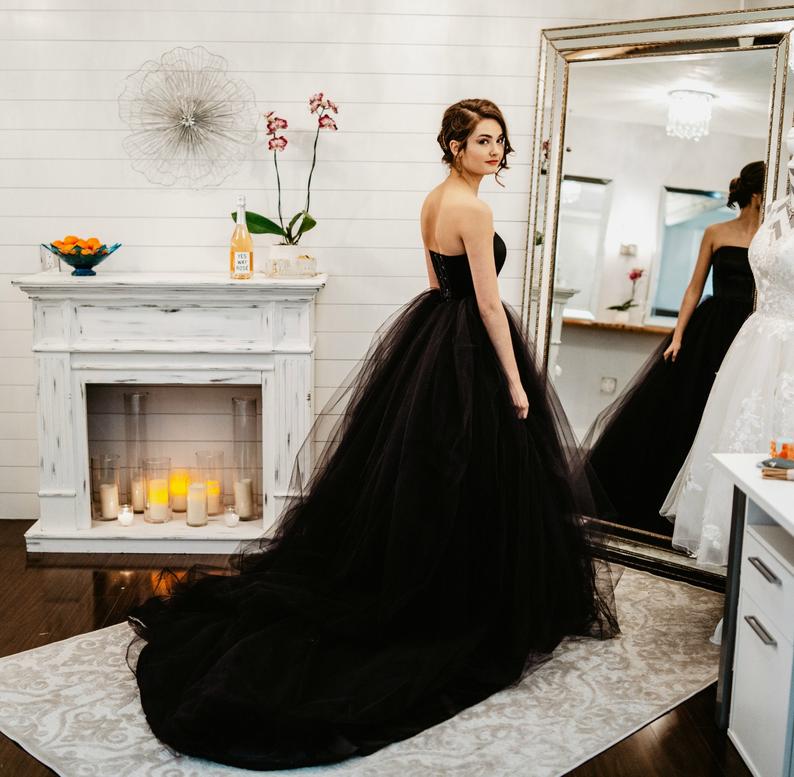 Hot Black Gothic Wedding Dresses Tulle Skirt Colored Wedding Gown