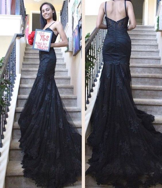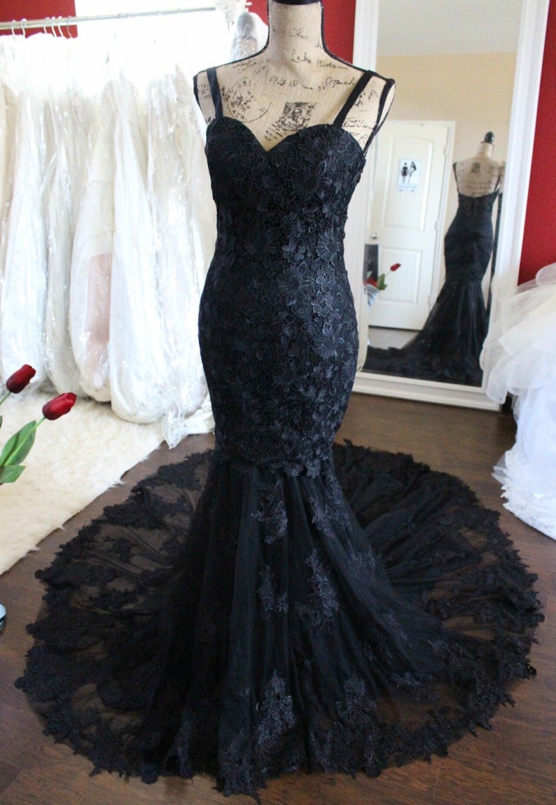 Mermaid Lace Spaghetti Straps Gothic Black Wedding Dresses