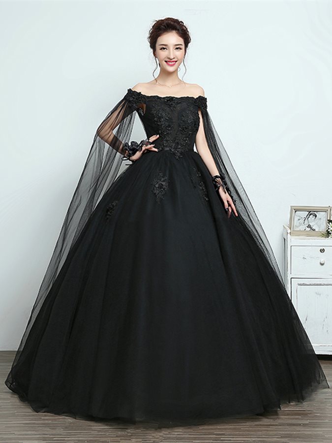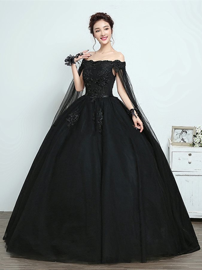 Ball Gown Off the Shoulder Lace Appliques Black Wedding Dresses