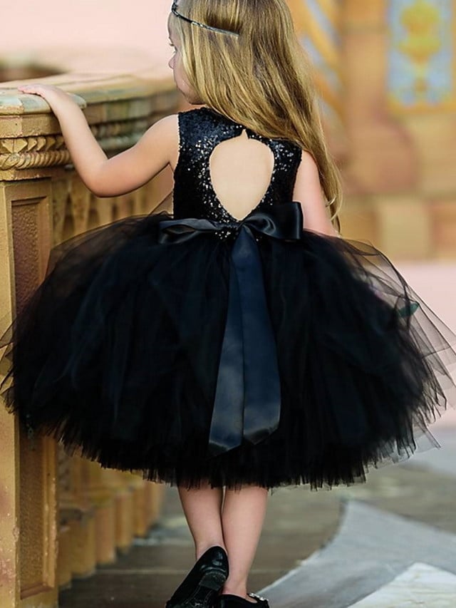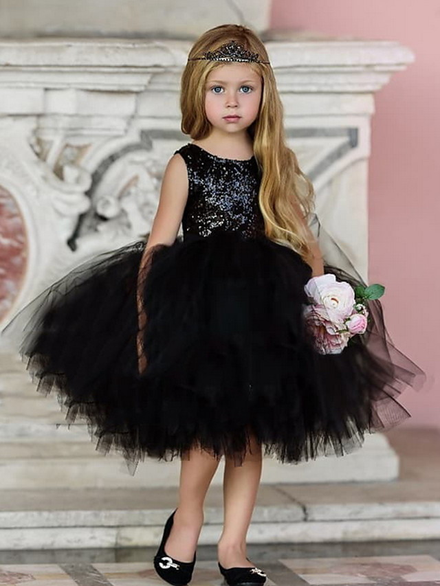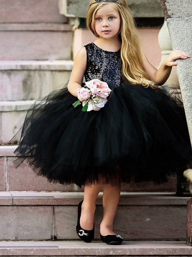 Cute Ball Gown Sleeveless Sequin Black Flower Girls Dresses
