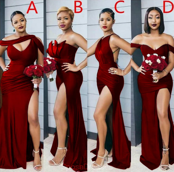 Cheap Hot Mermaid Chiffon Burgundy Bridesmaid Dresses