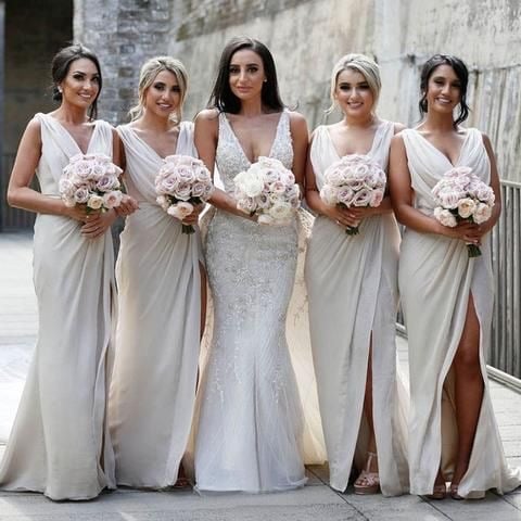 Long V Neck Bridesmaid Dresses Chiffon Slit Wedding Guest Dress