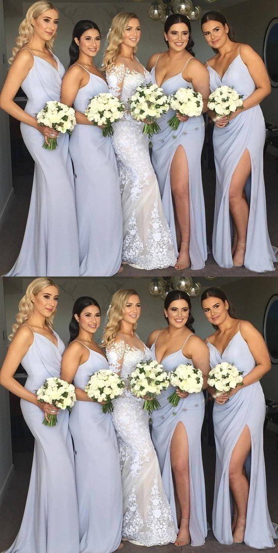 Spaghetti Straps Split Blue Chiffon Bridesmaid Dresses under 100