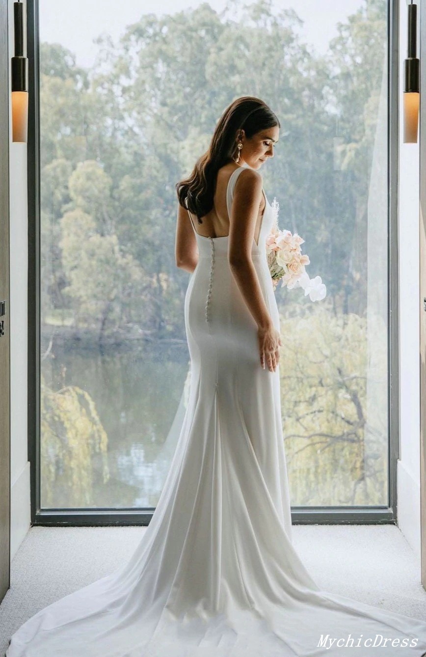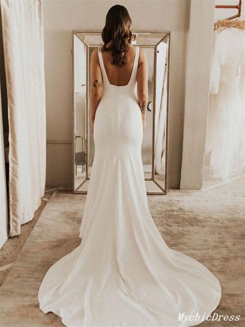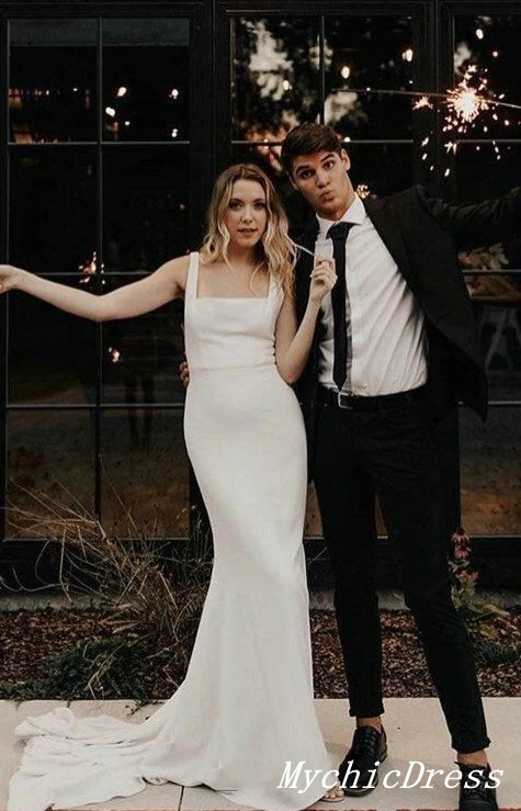 Long Simple Square Satin Ivory Wedding Dresses UK Mermaid