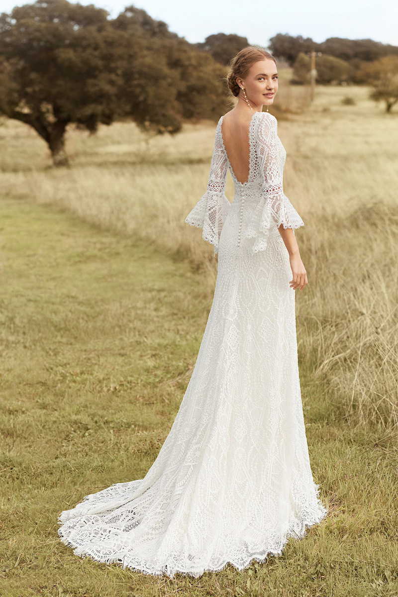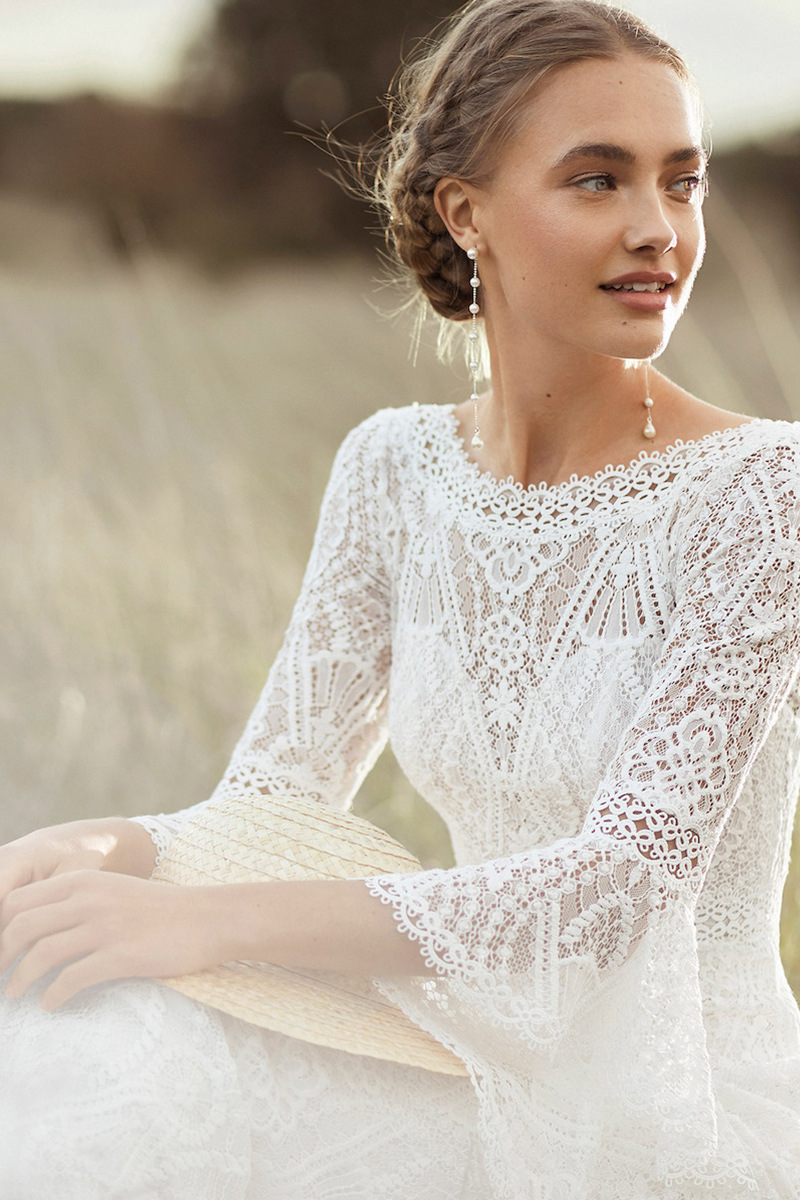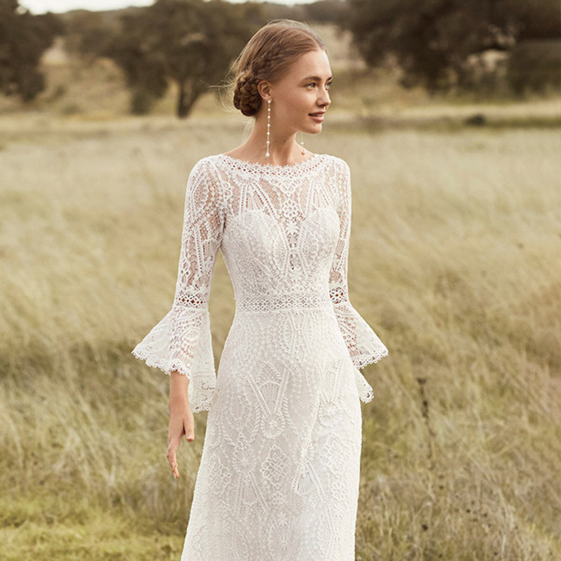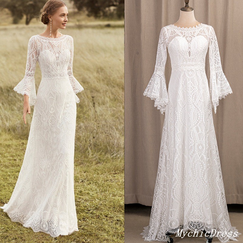 Hot Lace Mermaid Beach Wedding Dresses Puffy Long Sleeves Brial Gowns