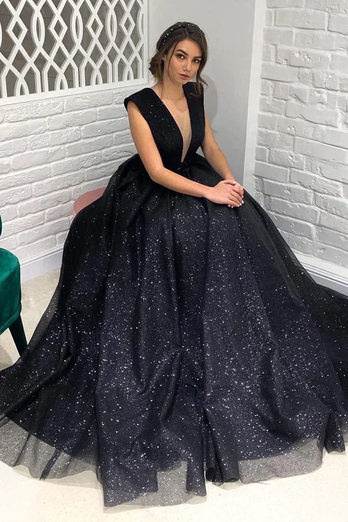 Cheap Black Prom Dresses Sequin Long Evening Formal Dresses UK